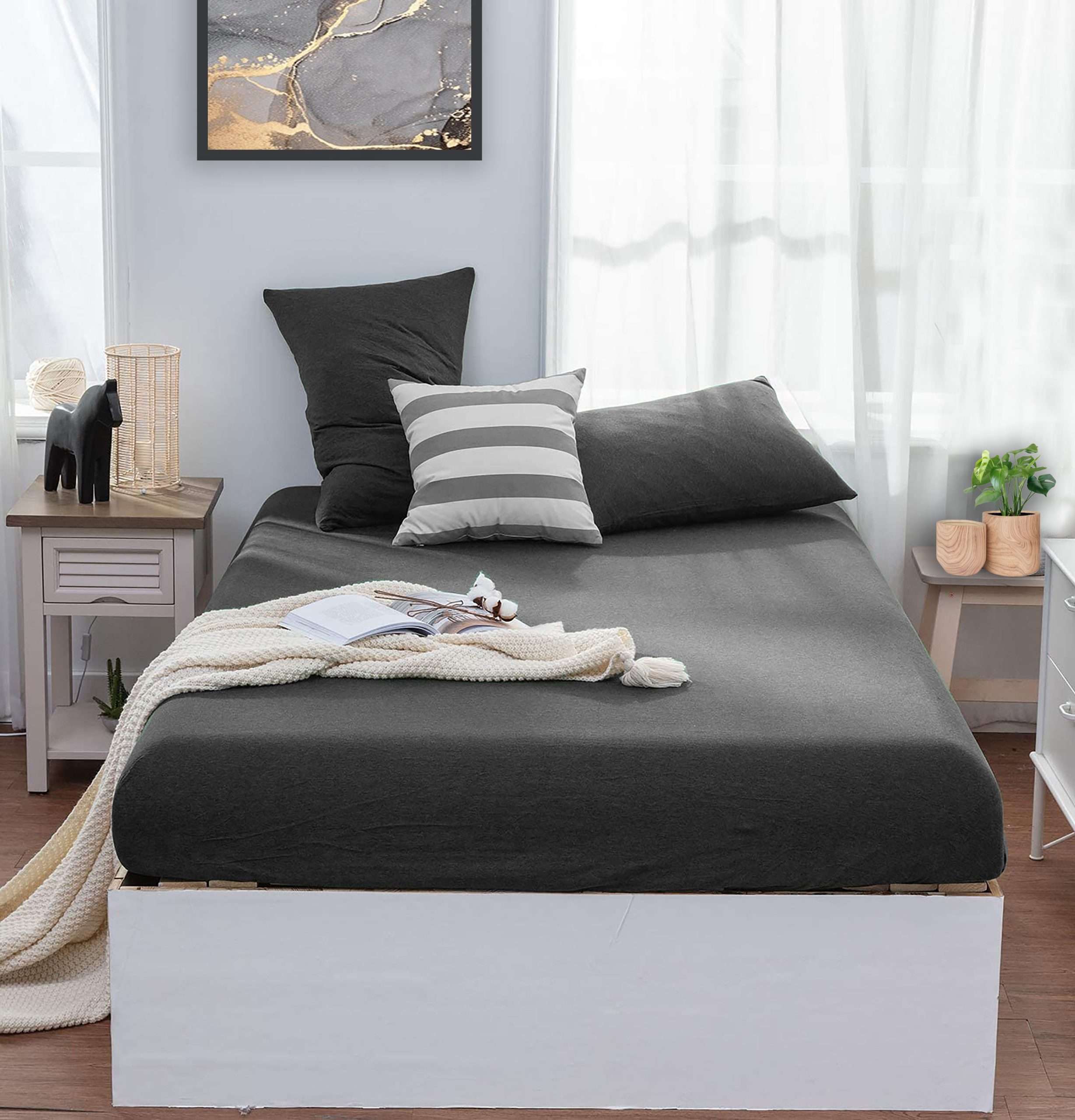“You’ll love the soft, cozy feel of this jersey fitted sheet.”